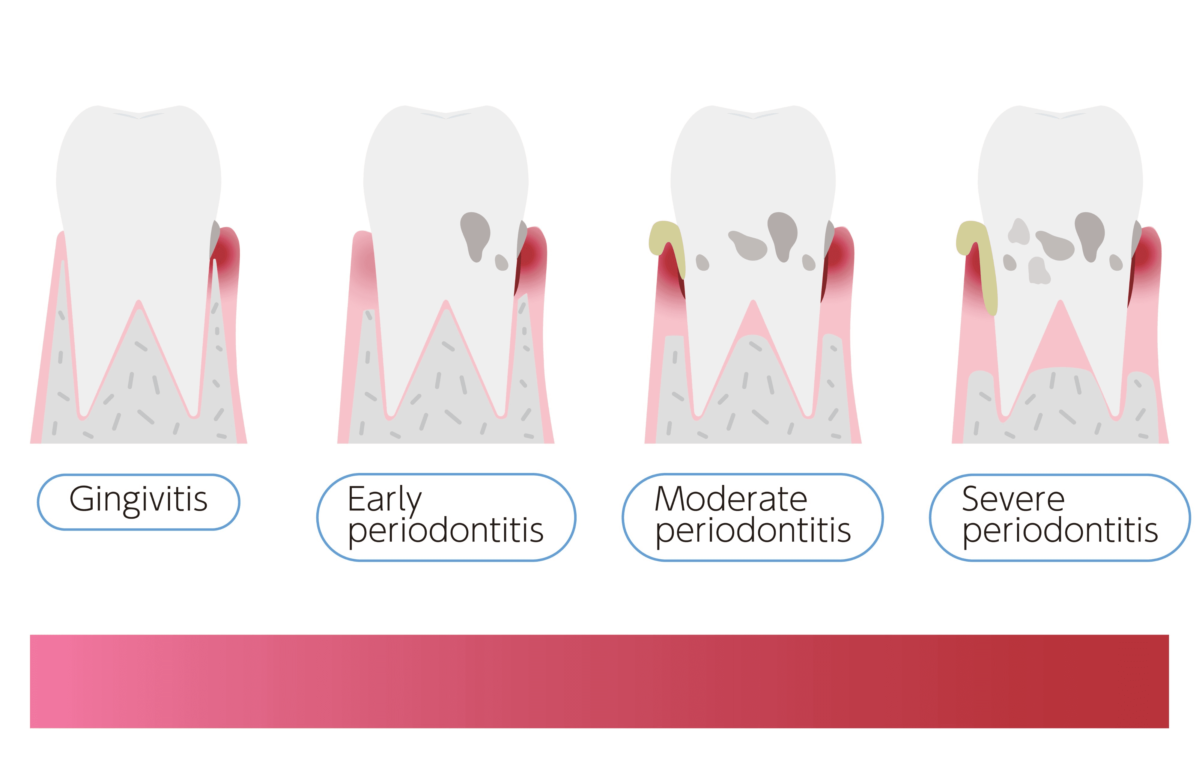 Healthy gums fit tight around your teeth, like a turtleneck sweater. When bacteria build up, they cause infection that detaches the gum from the tooth, creating a space called a periodontal pocket.